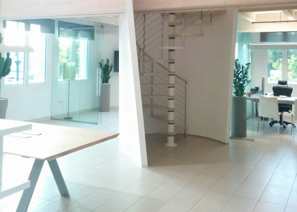 Abbiamo realizzato l'arredamento dell'open space con un design all'avangiardia e materiali che conferiscono agli spazi grande modernità.