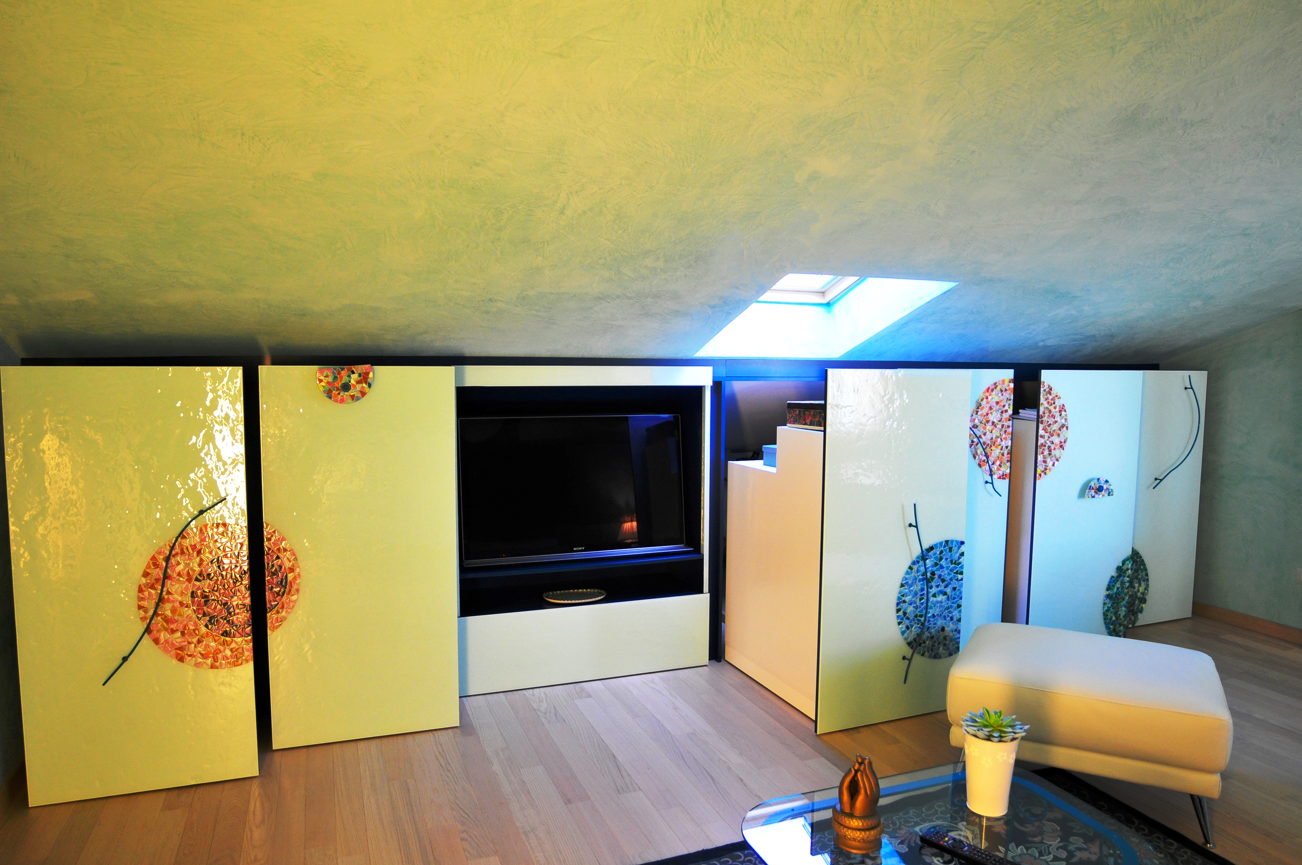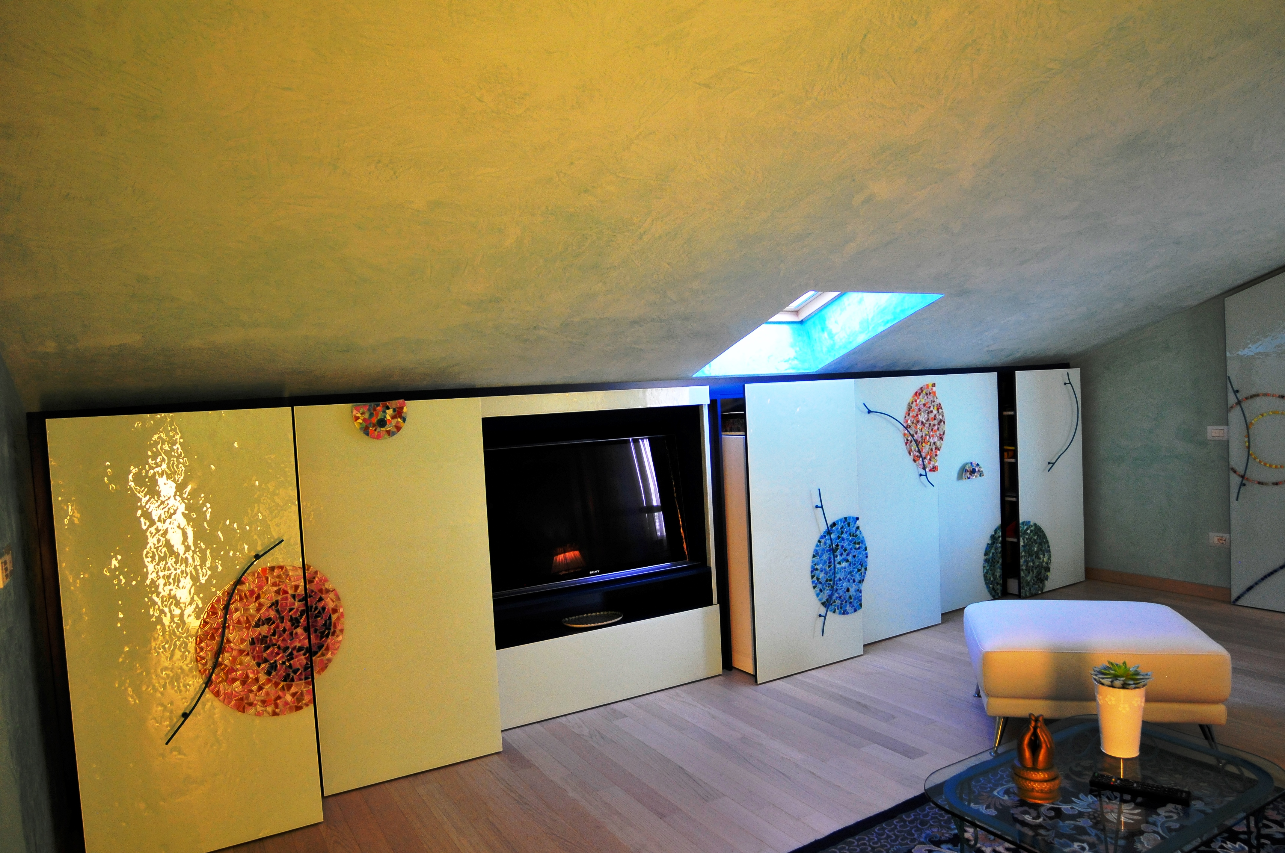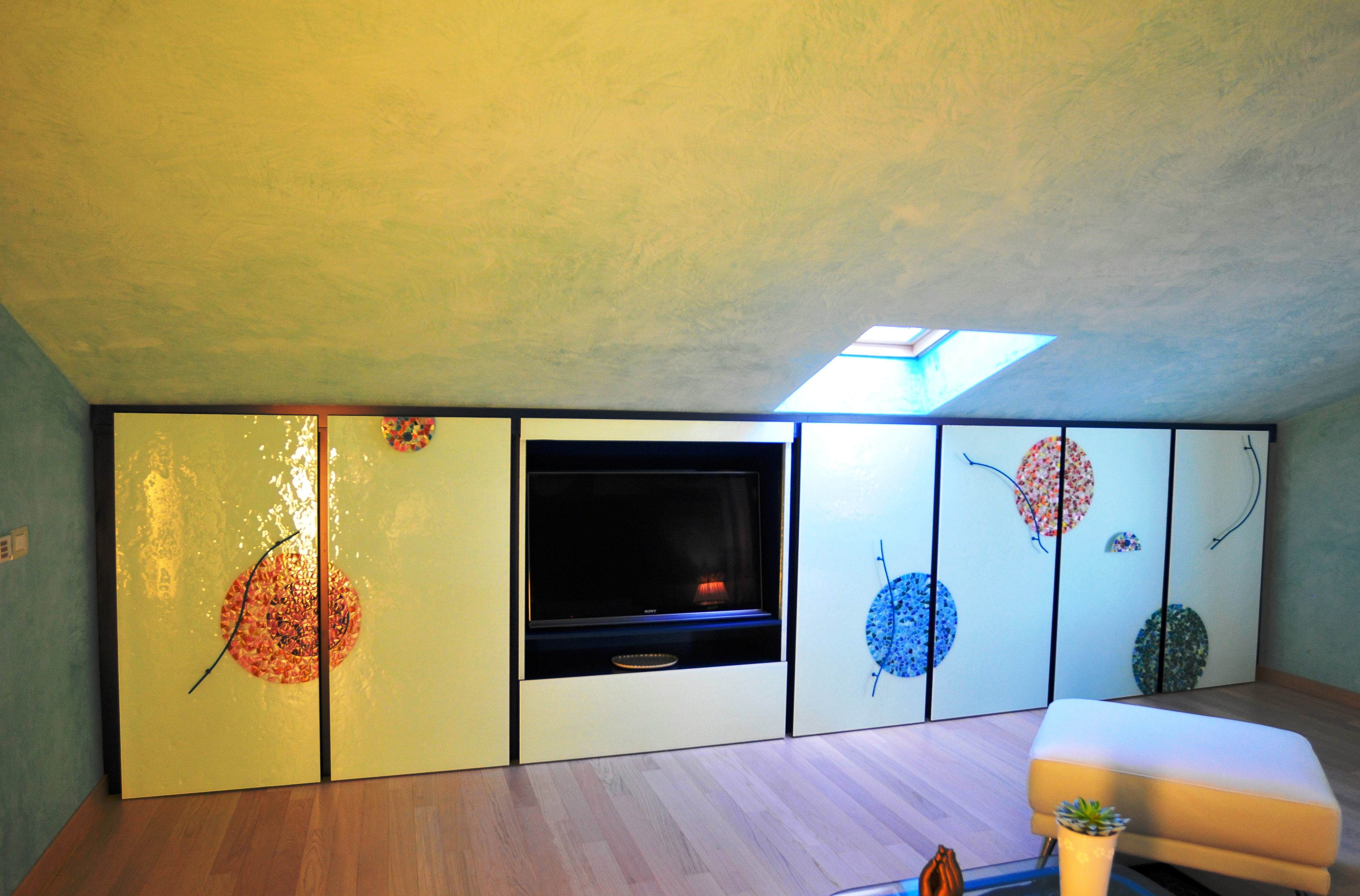 Abbiamo realizzato l'armadio e la porta di Luisa inserendo sul fronte vetro con mosaico.