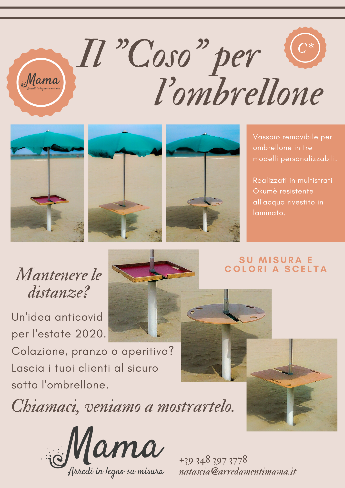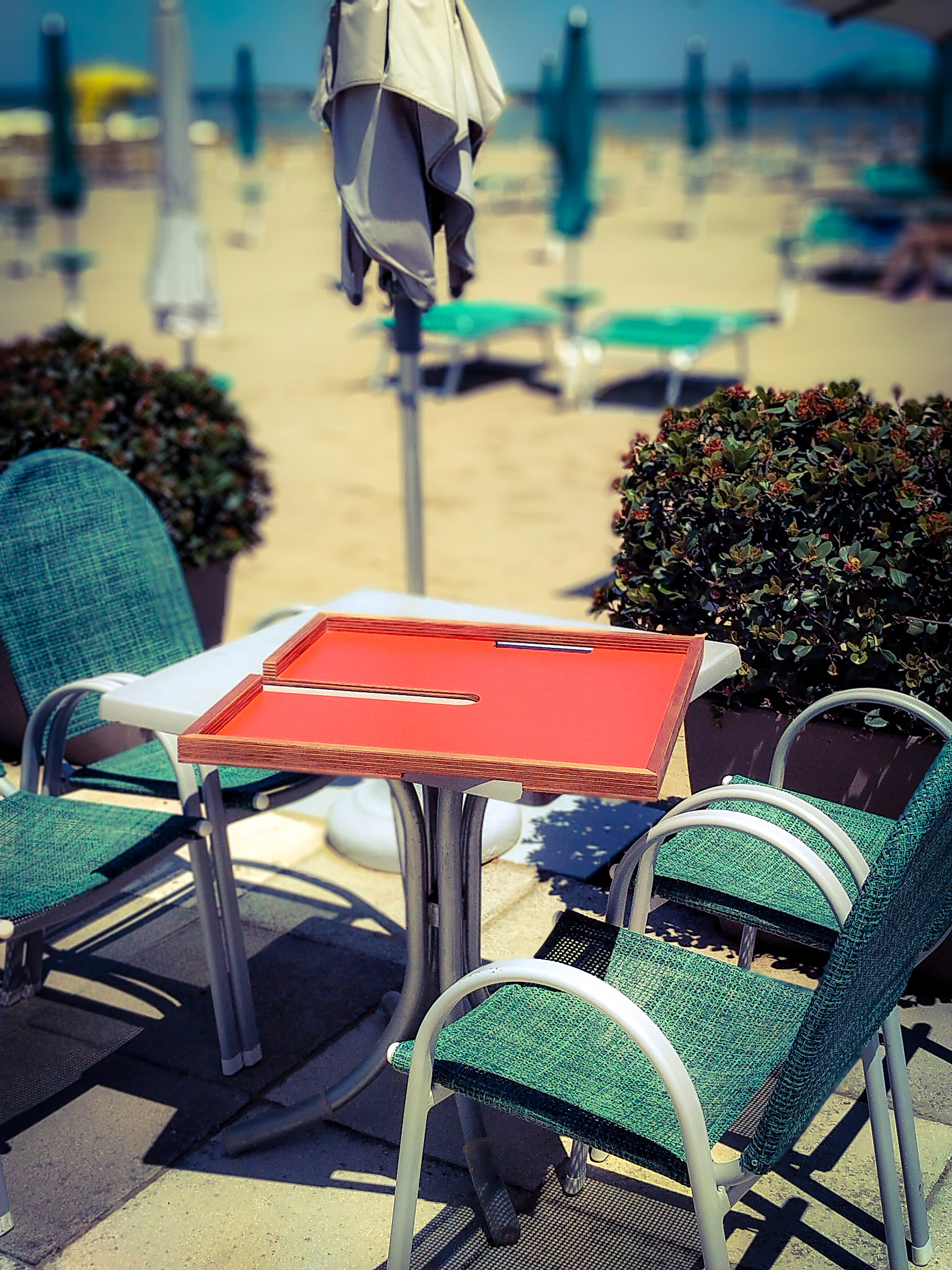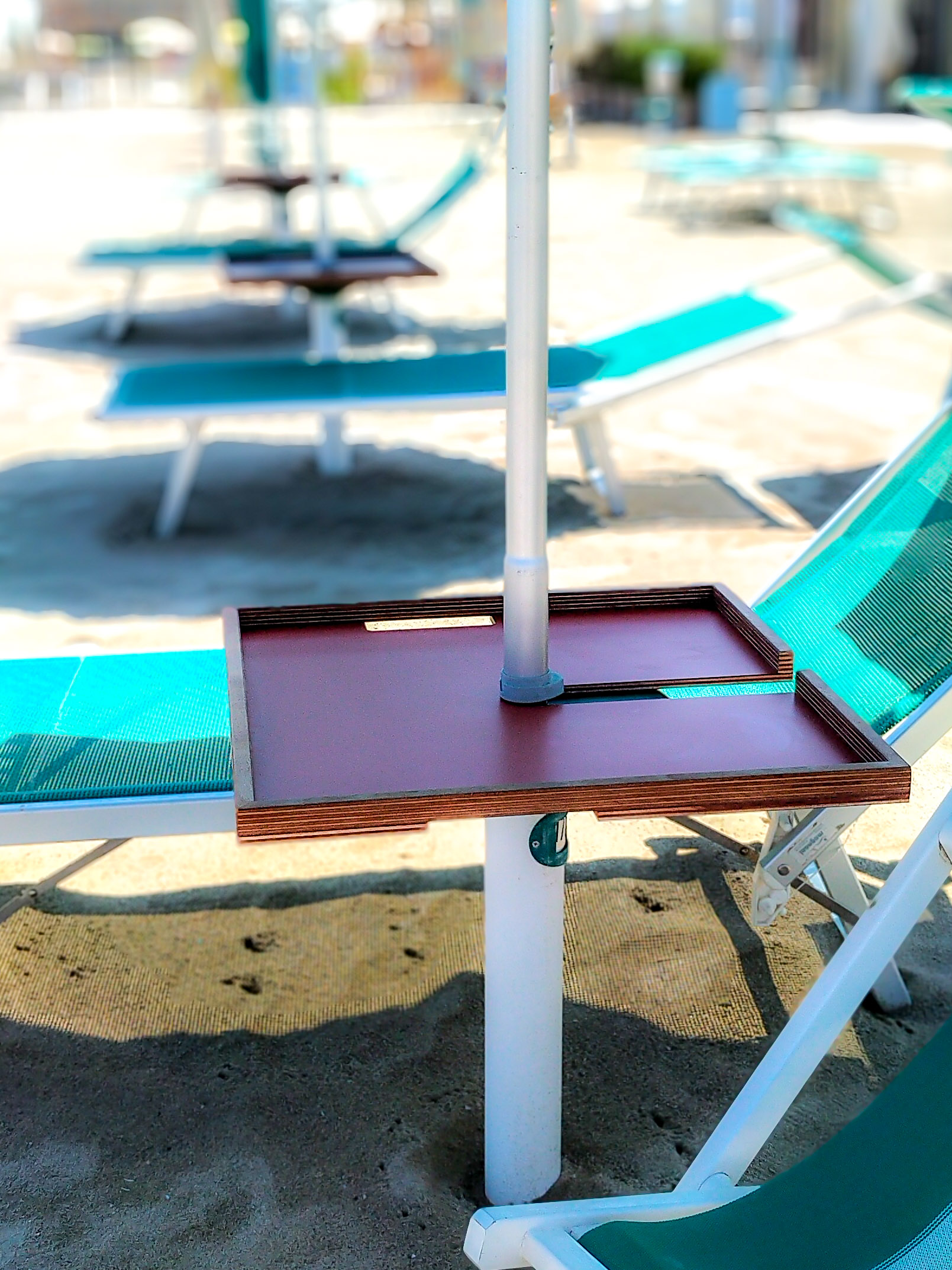 Vassoio removibile per ombrellone con bordature o senza in legno okume' e laminato mm.12.
