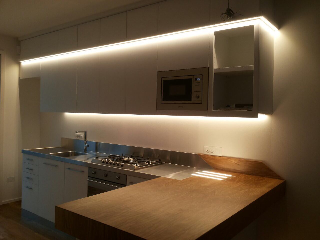 La cucina che abbiamo realizzato per Francesca ha la particolarità di avere un bellissimo piano lavoro in massello e acciaio fattu su misura.