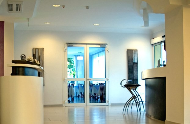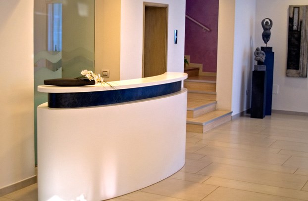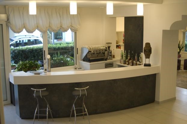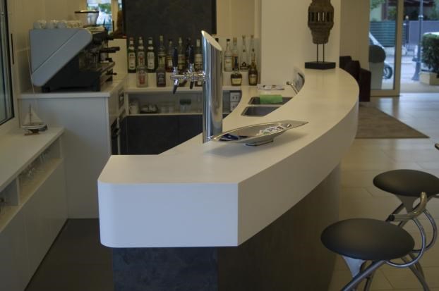 Direttamente dall'idea dell'albergatore un progetto dalle linee rigorose e moderne, con largo utilizzo di Corian.