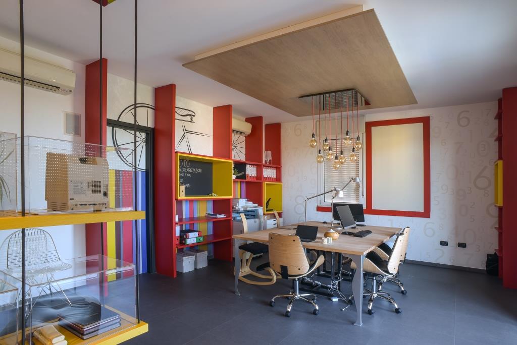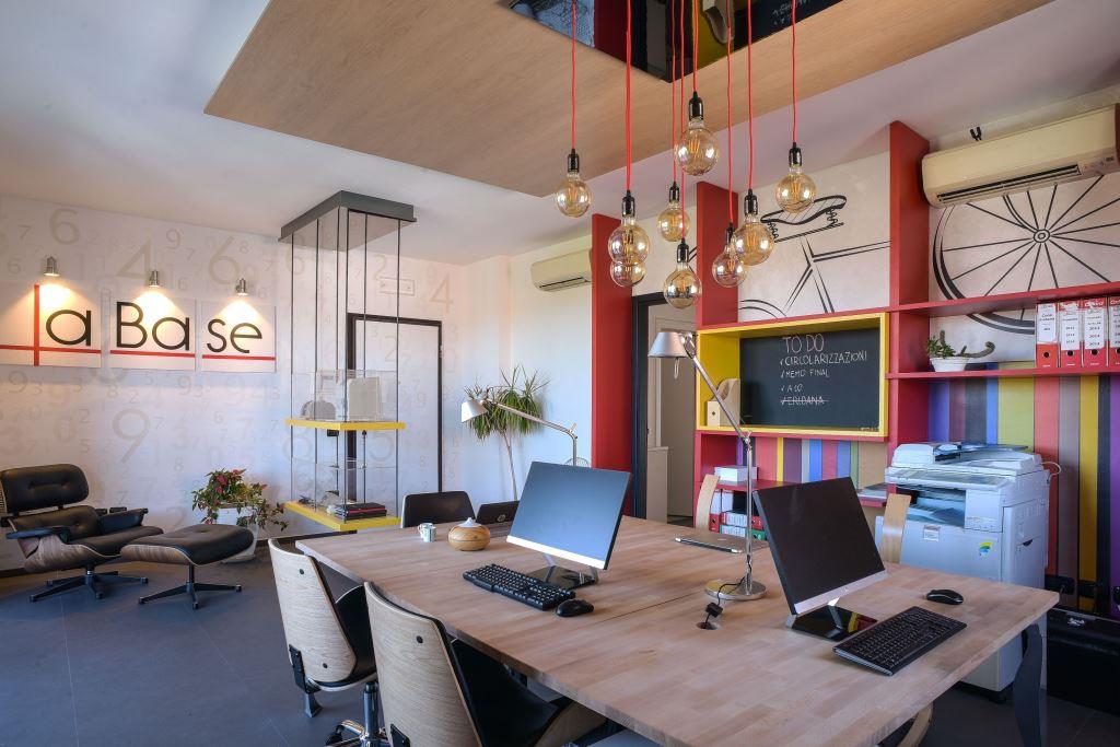 Per Arkinprogress l’ambiente di lavoro deve rappresentare l’immagine e la personalità di chi lo vive. Nel caso dello studio contabile LaBase, Marco e Alessio non si sono chiusi negli stereotipi classici degli uffici contabili, relegati ai colori freddi e dai tono eccessivamente severi, ma sono partiti dall’intervista ai membri dello staff, per conoscere il loro background e trasformare i loro stimoli in idee cretive. Arkinprogress ha progettato una soluzione a due facce: da una parte l’ufficio colorato e frizzante,; dall’altra la sala riunioni, più seria e minimal, nel primo ambiente si è dato spazio alla creatività dei dipendenti, nel secondo alla centralità del contesto professionale. Questo progetto dimostra che gli ambienti di lavoro non devono limitarsi a raccontare che lavoro fai ma possono raccontare anche chi sei.